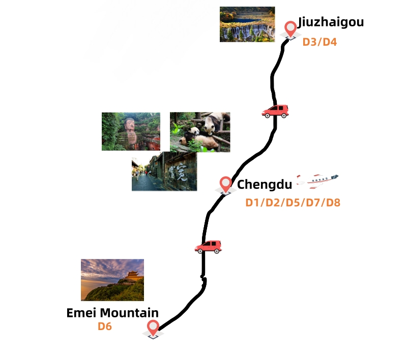 Destinations: Chengdu - Jiuzhaigou - Huanglong - Leishan - Mount Emei