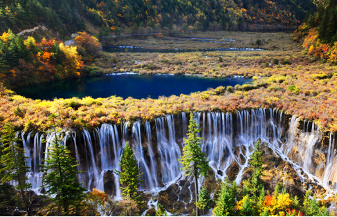 In the morning, enjoy a full day of sightseeing in Jiuzhaigou, a nature reserve located in northern Sichuan. This area is renowned for its numerous multi-level waterfalls and vibrant lakes. It was designated a UNESCO World Heritage Site in 1992 and falls under category V (Protected Landscape) in the IUCN system for protected area classification.