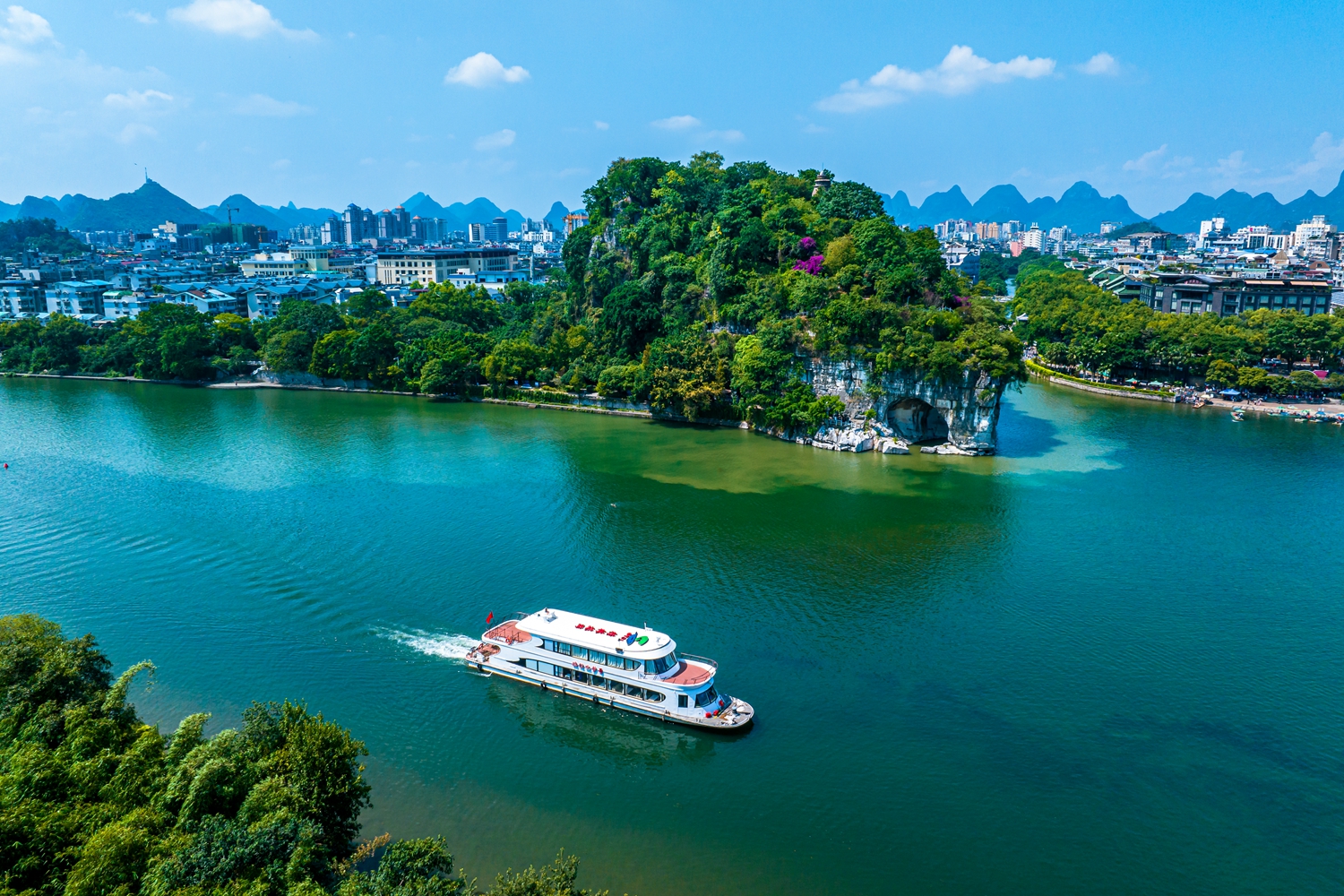 Begin your journey with a morning flight to Guilin. Upon arrival, head straight to Elephant Trunk Hill, a natural formation that resembles an elephant drinking water with its trunk. The area boasts several scenic spots, including Shuiyue Cave, Elephant Eye Rock, and the Puxian Pagoda and Yunfeng Temple, etc.