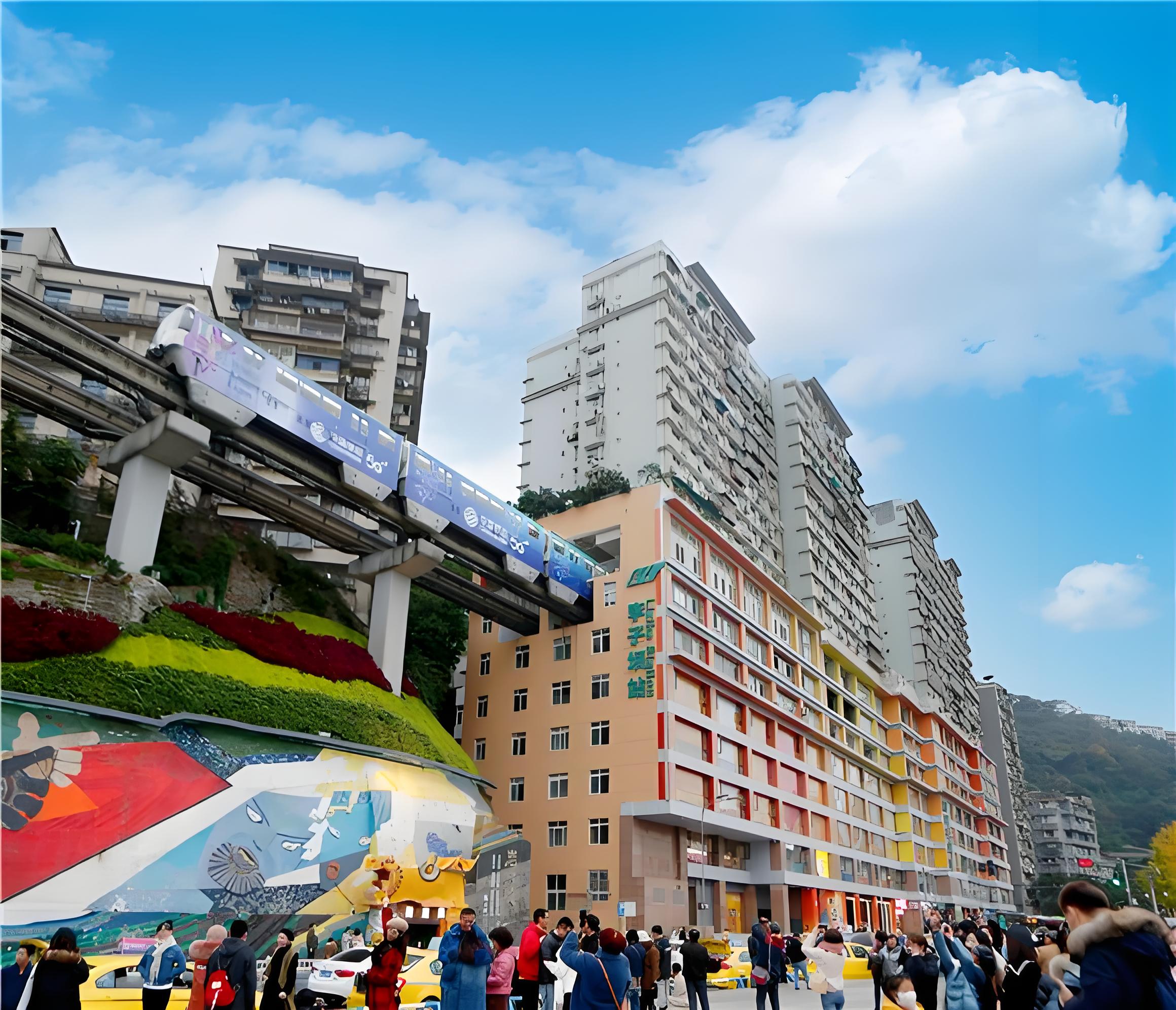 Next, we proceed to the Three Gorges Museum, a comprehensive museum dedicated to showcasing various historical and artistic facets, including Ba Yu culture, Three Gorges culture, Anti-Japanese War culture, immigrant culture, and urban culture. Following our visit, we continue our adventure by taking the Chongqing transit line 2 to Liziba station. Here, we will marvel at the city's prototype and experience the unique architecture of an 11-story residential building.