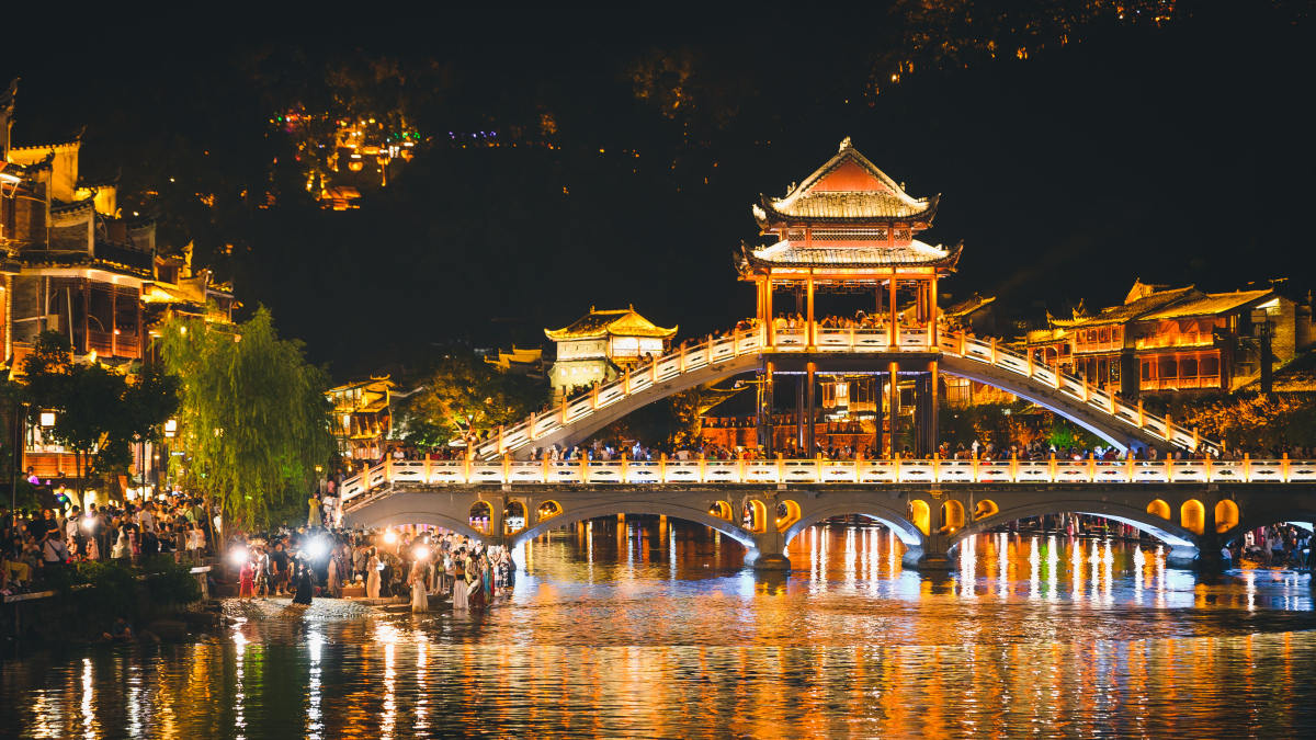 Today, we relax and enjoy Fenghuang's deep history and colorful minority culture. Fenghuang Ancient Town, also called Phoenix, is a stunning 300-year-old place. It's famous for its wooden houses on stilts by the river, called Diaojiaolou.