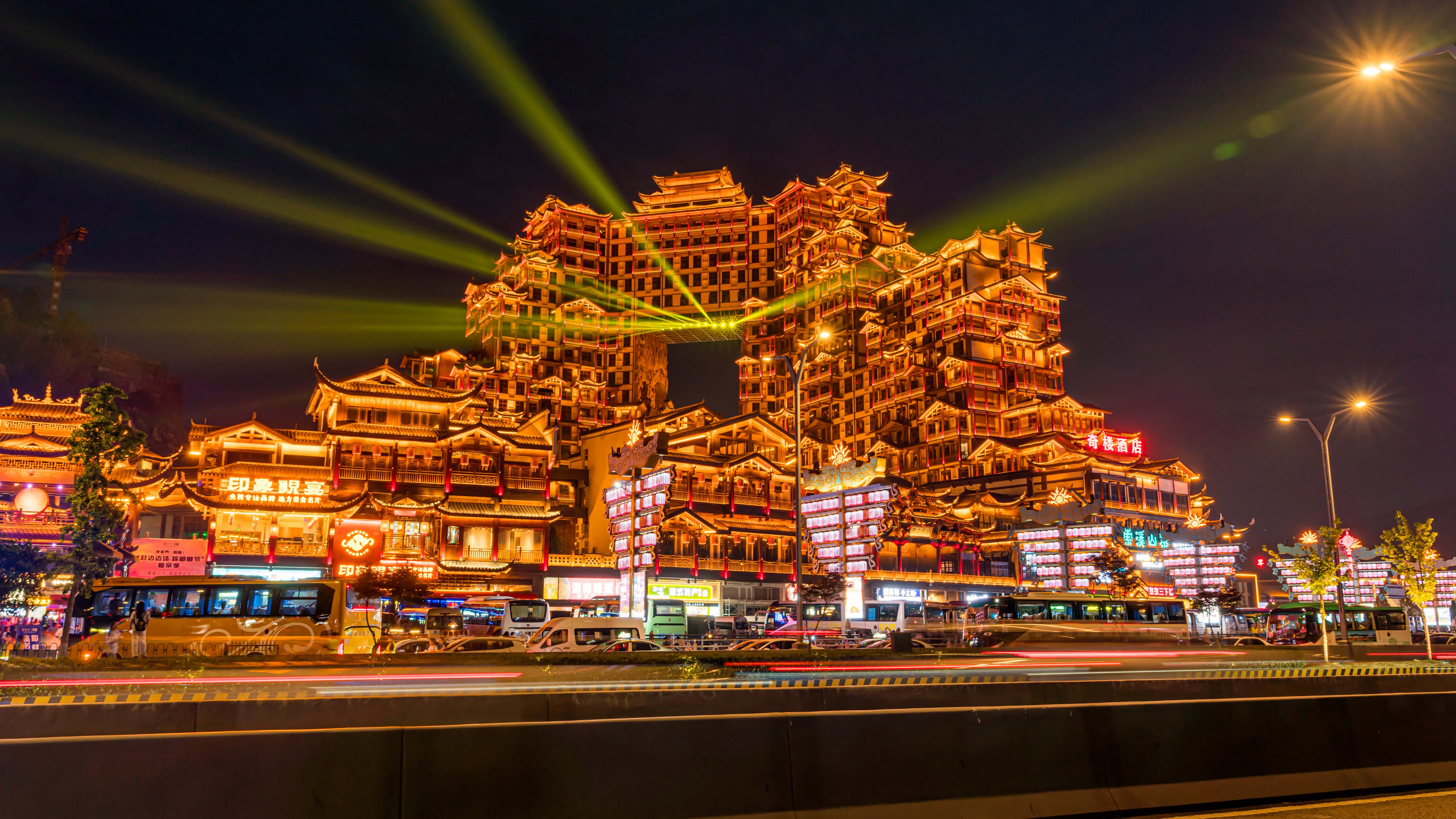 Soar to new heights on Tianmen Mountain via the world’s longest cable car (7,455m), offering jaw-dropping views of the “99-Bend Sky Road.” Walk the thrilling Glass Skywalk clinging to cliff edges, then take an elevator to Tianmen Cave, a colossal natural arch high in the mountains. Later, glide across Baofeng Lake, dubbed the “Jade Mirror of the World,” surrounded by emerald peaks and cascading waterfalls. End the day at the 72 Superb Building, a towering stilt-structure Guinness World Record holder, where vibrant night markets and cultural displays await. A day of adrenaline, serenity, and architectural marvels!