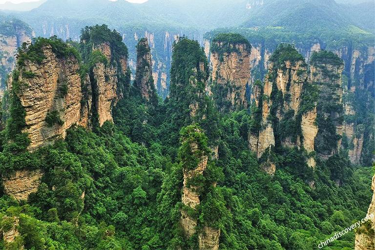 Start the day in Furong Town, an ancient settlement nicknamed “Millennium Town Hanging Over a Waterfall.” Wander its mossy (stone pathways), marvel at Tujia stilt houses cascading over roaring waterfalls, and soak in 2,000 years of history. Next, journey to the Redstone Forest, a unique Cambrian-era geological marvel—explore vibrant red karst formations shaped over 500 million years, a testament to nature’s artistry. End the day in Zhangjiajie, gearing up for the natural wonders that await. A day of ancient towns and prehistoric landscapes!