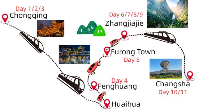 Destinations: Chongqing-Fenghuang-Furong Town-Zhangjiajie-Changsha