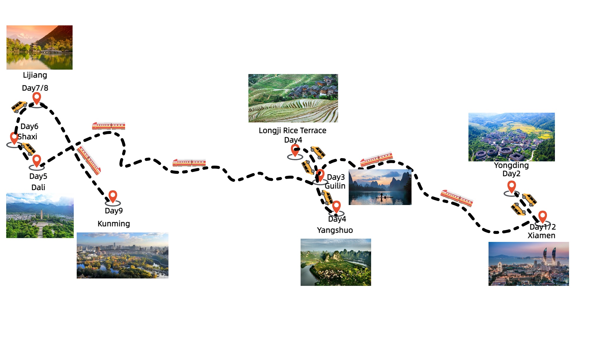 Destinations: Xiamen - Guilin - Yangshuo - Dali - Shaxi - Lijiang - Kunming