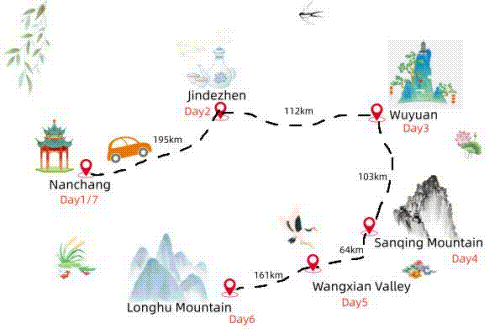 Today's itinerary includes a visit to Tianshi Palace and Shangqing Ancient Village, both of which are excellent places to experience Chinese Taoist culture. After that, we'll try the thrilling and exciting Luxi River Drifting experience. Finally, we'll drive back to Nanchang to stay overnight.