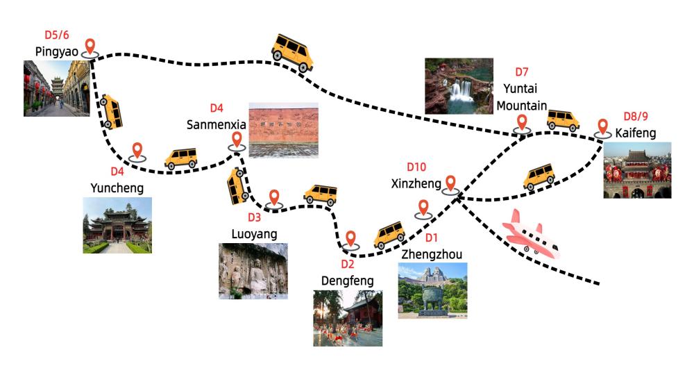 Destinations: Zhengzhou - Dengfeng - Luoyang - Sanmenxia - Yuncheng - Pingyao - Kaifeng - Xinzheng