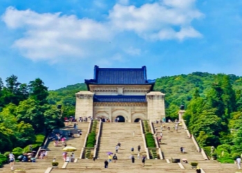 Next, we will visit another remarkable site in Nanjing: the Sun Yat-sen Mausoleum. This mausoleum is designed in a traditional Chinese style while also incorporating elements of Western architecture. As the first president of modern China and a heroic figure who led the Chinese people in overthrowing the monarchy, Sun Yat-sen is highly admired by the Chinese population. In his honor, a magnificent mausoleum was constructed to commemorate his contributions.