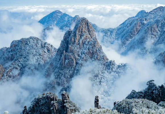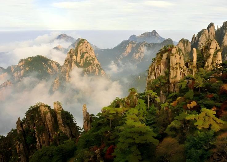The Huangshan Mountain is renowned for its oddly shaped pines, spectacular rock formations, hot springs and seas of misty and melancholy clouds.