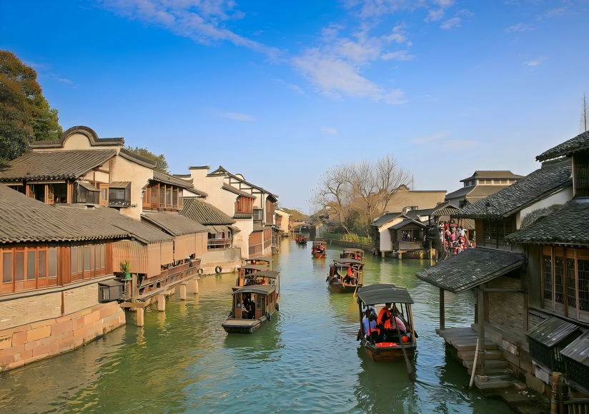 The tour today will begin from the famous Wuzhen Water Town, one of the six ancient towns in the southern region of the Yangtze River, The small town, with houses made of black bricks and gray tiles contrasting sharply with the white walls, making it appear like a Chinese ink wash drawing. After enjoying the picturesque ancient town, we will drive all the way to Suzhou and have a good rest.