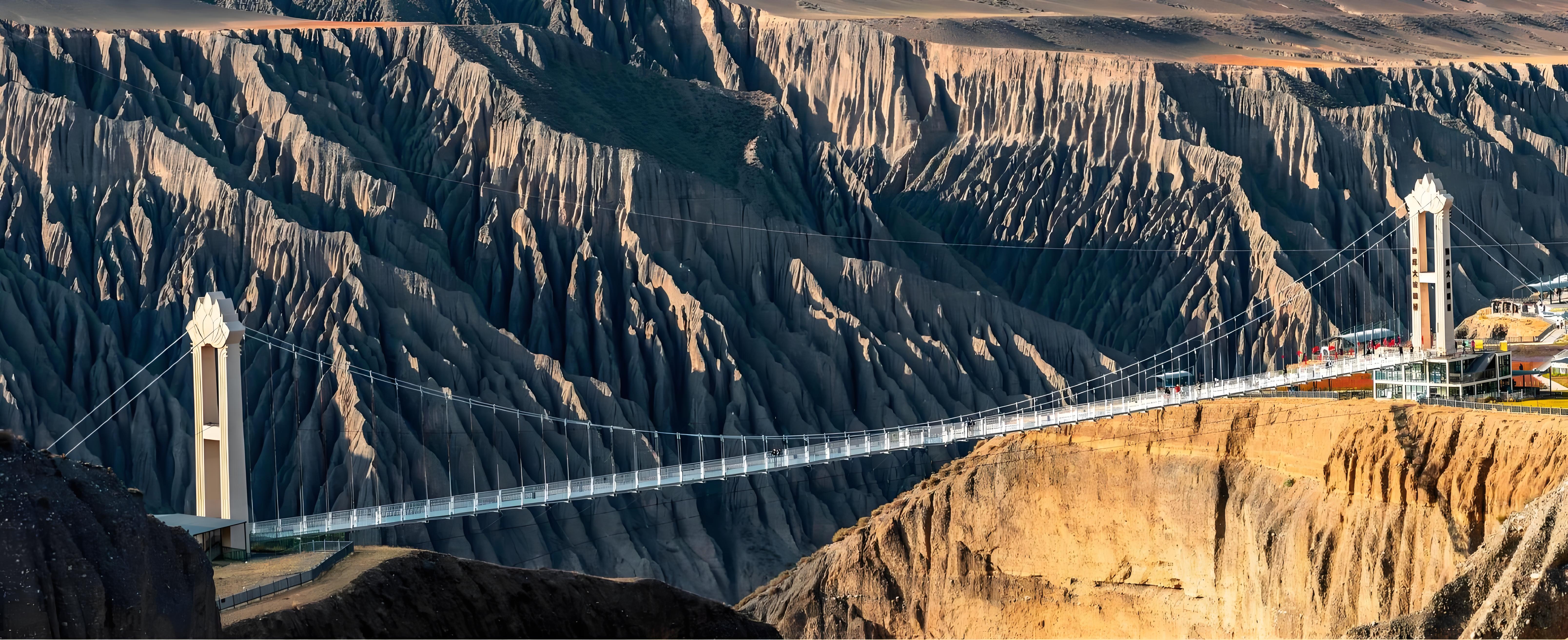 After breakfast, we'll embark on a scenic drive to the magnificent Dushanzi Grand Canyon. Here, you'll be treated to breathtaking views of the canyon and the thrilling experience of walking across the high-altitude glass bridge. Following that, we'll proceed to Jinghe, with the journey offering a splendid blend of Xinjiang's natural wonders and rich humanistic landscapes along the way.