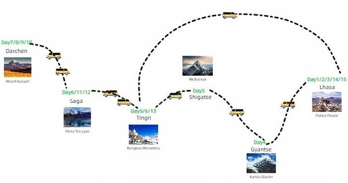 Destinations: Lhasa - Gyantse - Shigatse - Tingri - Saga - Darchen
