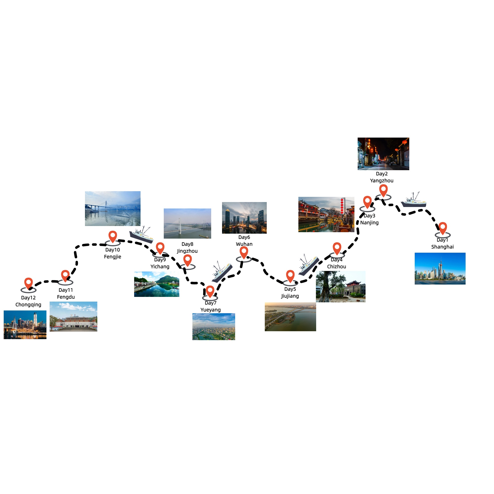 Destinations: Shanghai-Yangzhou-Nanjing-Chizhou-Jiujiang-Wuhan-Yueyang-Jingzhou-Yichang-Fengjie-Fengdu-Chongqing