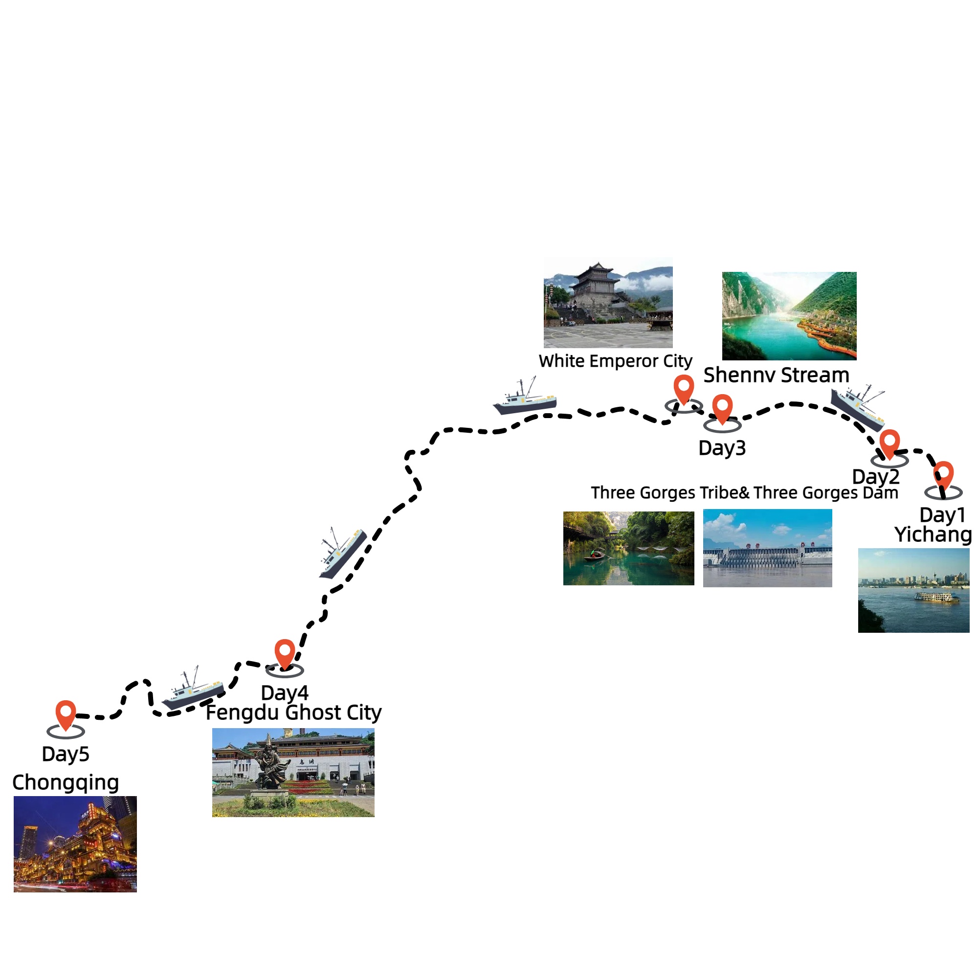 Destinations: Yichang-Wushan County-Fengjie County-Fengdu County-Chongqing