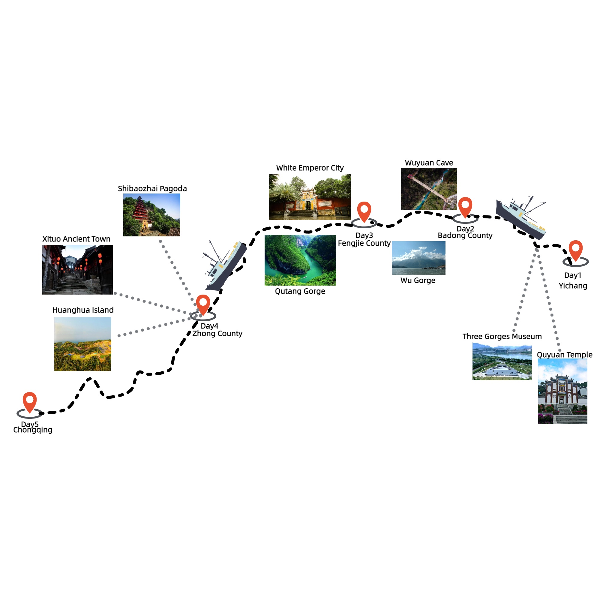 Destinations: Yichang-Badong County-Fengjie County-Zhong County-Chongqing