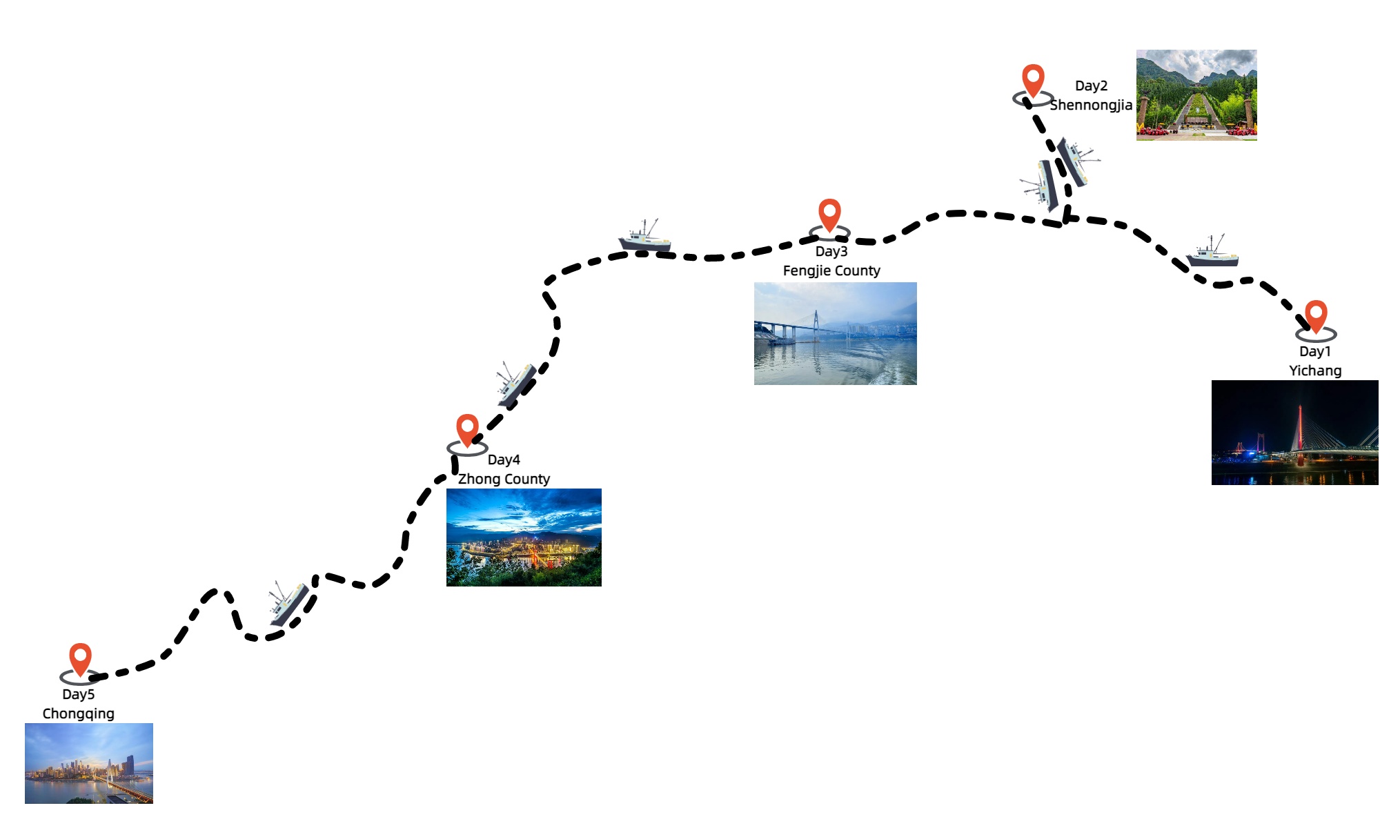 Destinations: Yichang-Shennongjia-Fengjie County-Zhong County-Chongqing