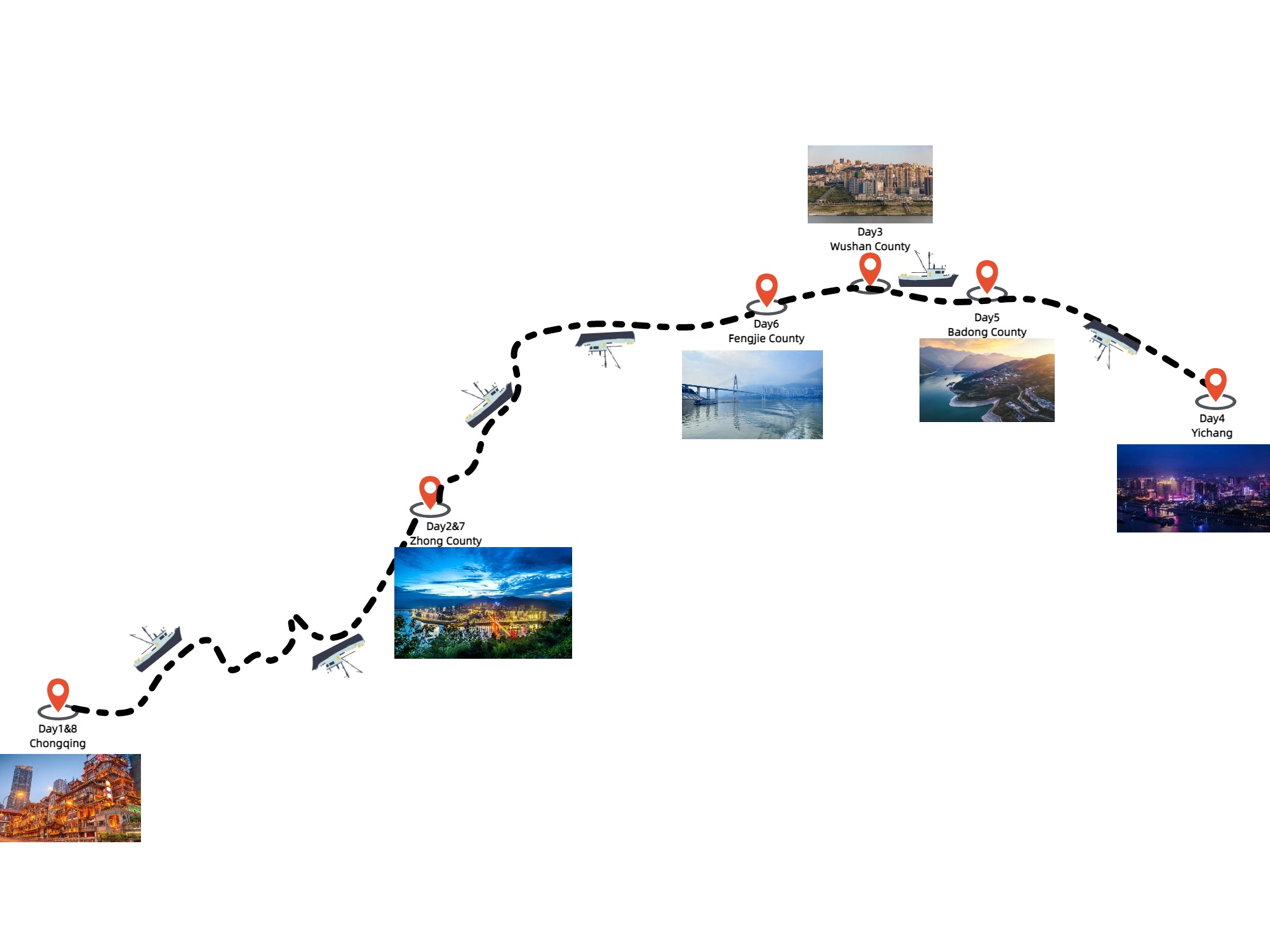 Destinations: Chongqing-Zhong County-Wushan County-Yichang-Badong County-Fengjie County-Zhong County-Chongqing