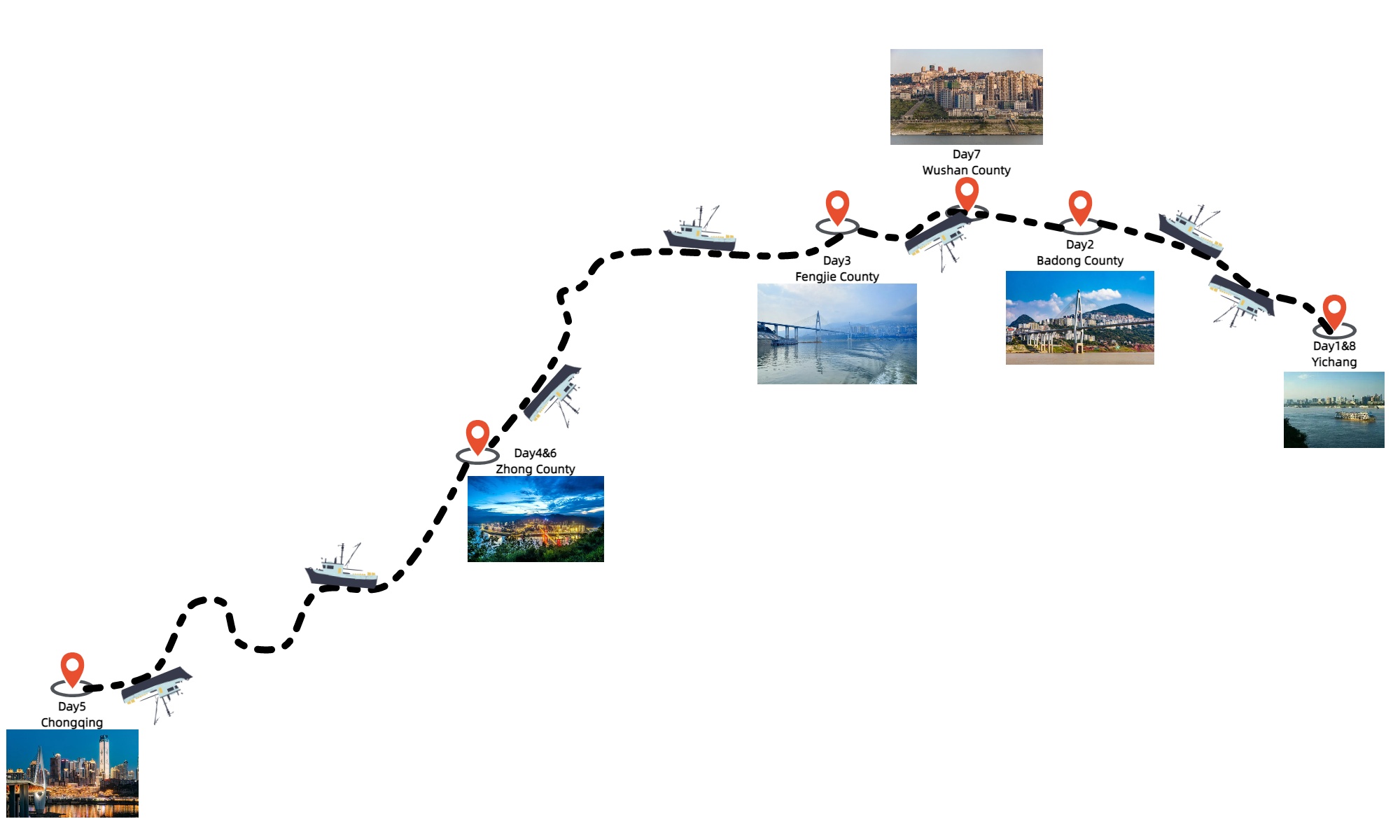 Destinations: Yichang-Badong County-Fengjie County-Zhong County-Chongqing-Zhong County-Wushan County-Yichang