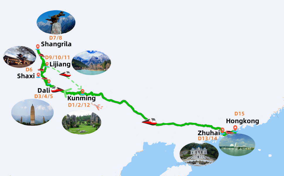 Marvel at the ancient limestone cliffs and peaks of the Stone Forest, then explore the multi-layered karst caves and rift canyons of Jiuxiang, showcasing the incredible geological wonders of Yunnan