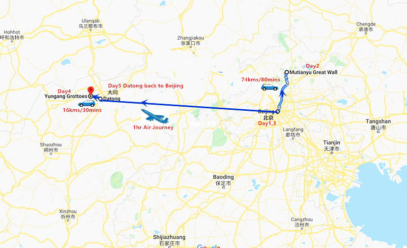Domestic flight from Beijing to Datong ( Round Trip ) are listed in the itinerary