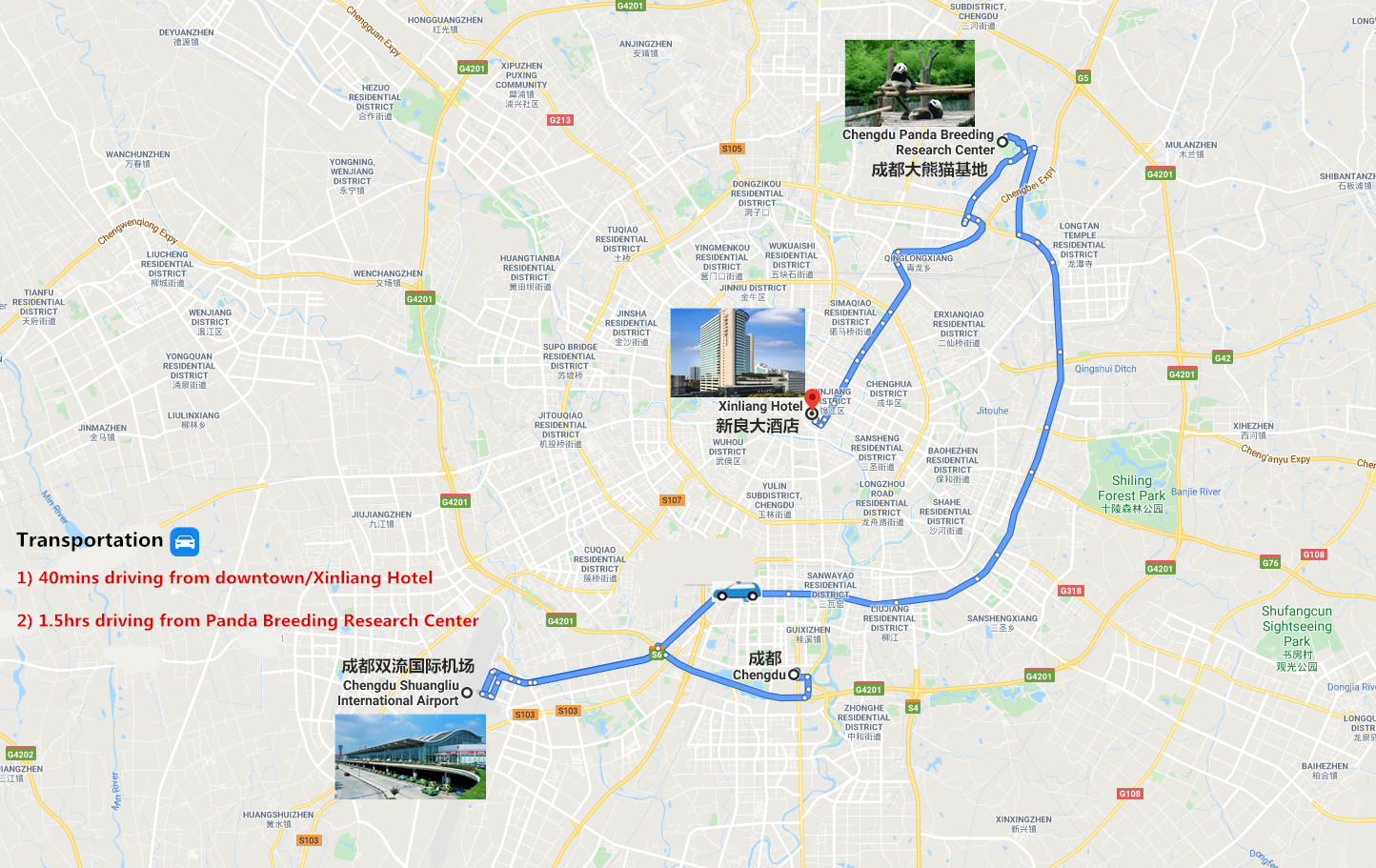 Besides, our driver can help you out if any necessary. Then your driver will drop off you at your located hotel in Chengdu.