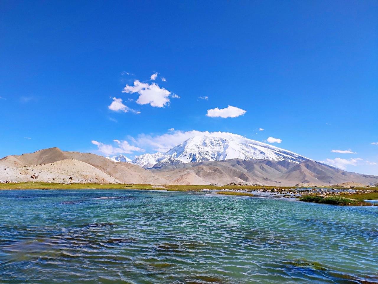 Marvel Karakul Lake, a high-altitude lake set at the foot of snowcapped Muztagh Ata (7,546m) and Kongur Tagh (7,719m)