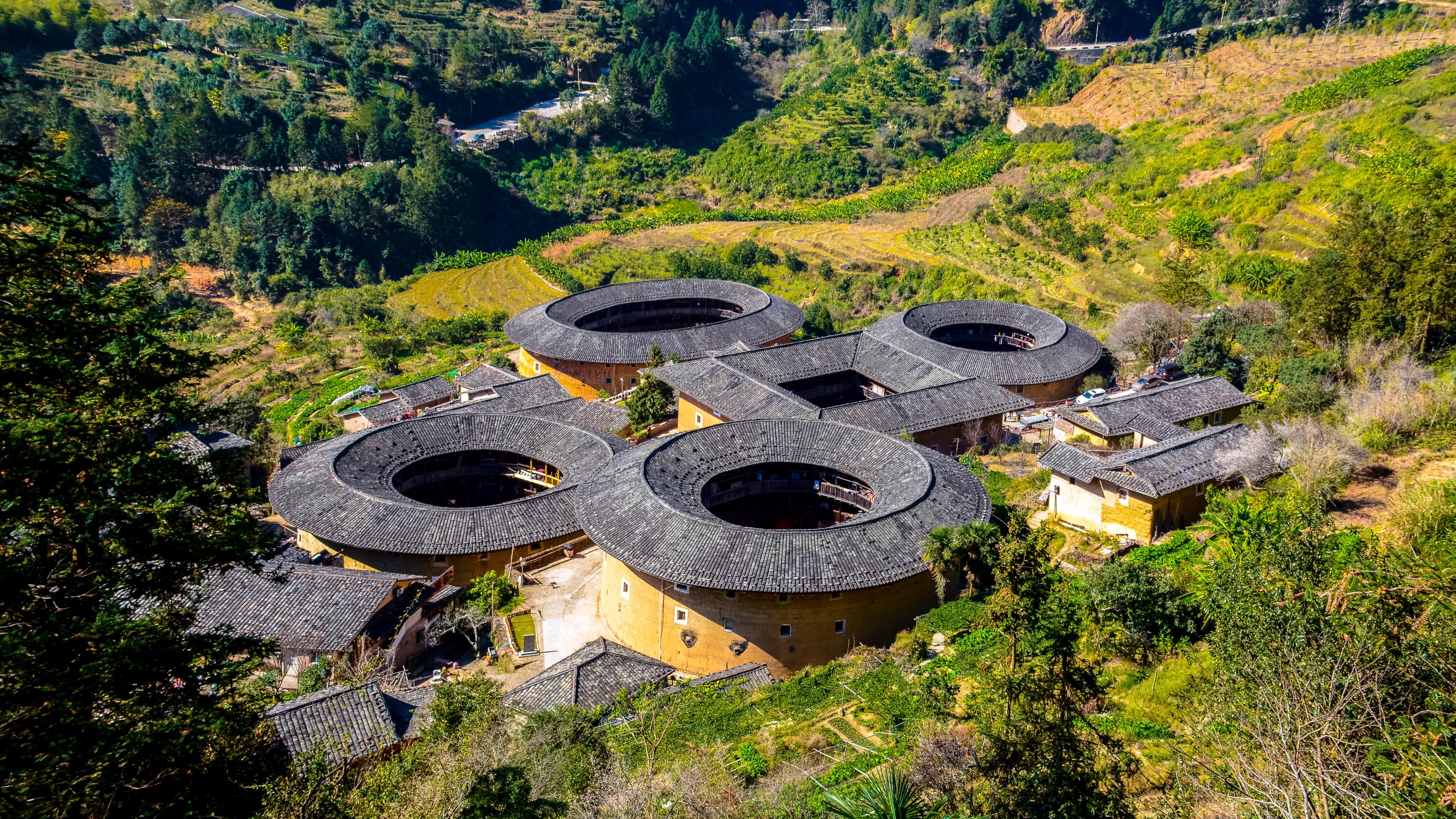 Morning drive about 3hrs to Tianluokeng Tulou in Zhangzhou City situated in southeasten Fujian. Formed by one square Buyulou with three round and one oval surrounded, it is famous for its specific cultural value and architectural style.