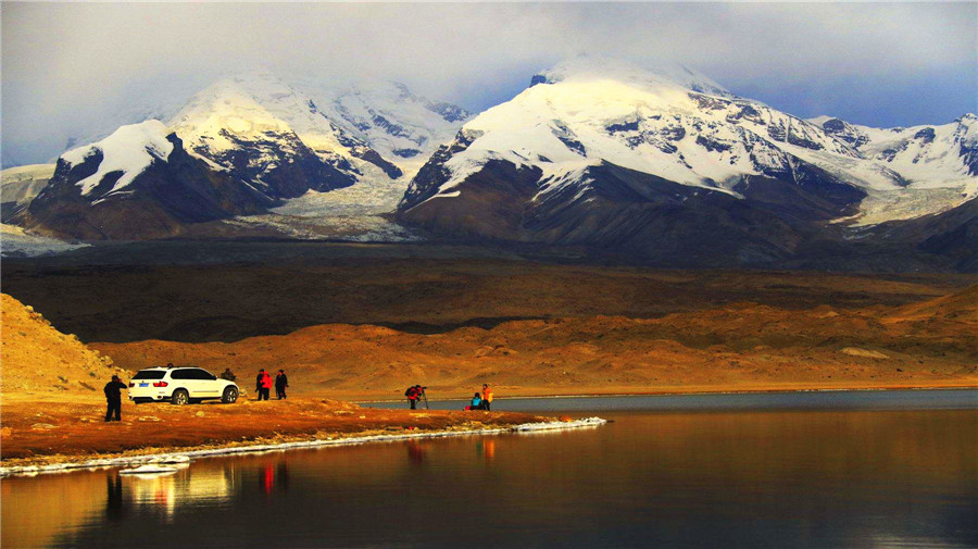 ● Marvel Karakul Lake, a high-altitude lake set at the foot of snowcapped Muztagh Ata (7,546m) and Kongur Tagh (7,719m)