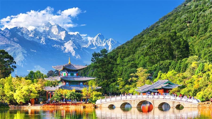 Arrive in Lijiang, take you to visit the Lijiang Old Town, officially called "Dayan Town", "Dayan" literally means a "great ink stab", a graphic description of the town's location on a piece of rich flatland fed by a river and surrounded by green mountains. The Old Town is full of cobbled streets, crisscrossing canals, swaying willow trees and gaily hued blossoms. Every so often, a bridge stone, wooden, flat, arched, roofed-pops up and along it trundles local folk in traditional dress.