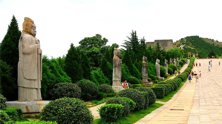 First we pay a visit to Qian Tomb, lies on Liangshan Hill, about 80 kilometers from Xi'an. It took 23 years to complete Qian Tomb.