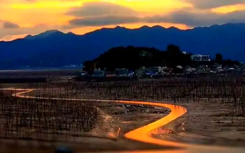 Then travel to Shajiang Town and enjoy the sunset of Shajiang S Bay(沙江S湾). The beautiful lines formed by many bamboo poles inserted on the tidal flat are arranged on both sides of the "S"-shaped harbor waterway, forming a perfect Xiapu tidal flat scenery. Every time the kelp is harvested, the ships that come and go will shuttle between the "s"-shaped pole shadows, making the originally beautiful harbor more colorful and the rhythm of ink painting more outstanding.