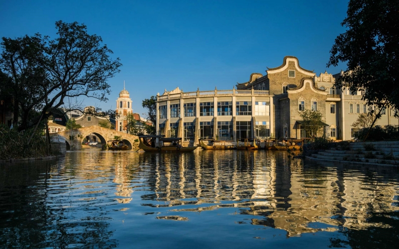 In the morning, enjoy breakfast at the hotel. Afterward, we will travel to Kaiping and visit the Watchtower Group of Zili Village (自力村碉楼群). Zili Village is located in Tangkou Town and is known for its vast flower fields and sacred buildings set amidst the rapeseed. The village, whose name means "self-sufficiency," boasts beautiful scenery and many unique, beautiful buildings constructed in a simple style. It's worth mentioning that this is the primary location for "Bullet Flying," which holds the record for the highest domestic movie box office sales. After leaving Zili Village, we will head to Chikan Town (赤坎古镇), which is home to the largest, most continuous, and well-preserved ancient arcade architectural complex in the country's overseas Chinese hometowns.