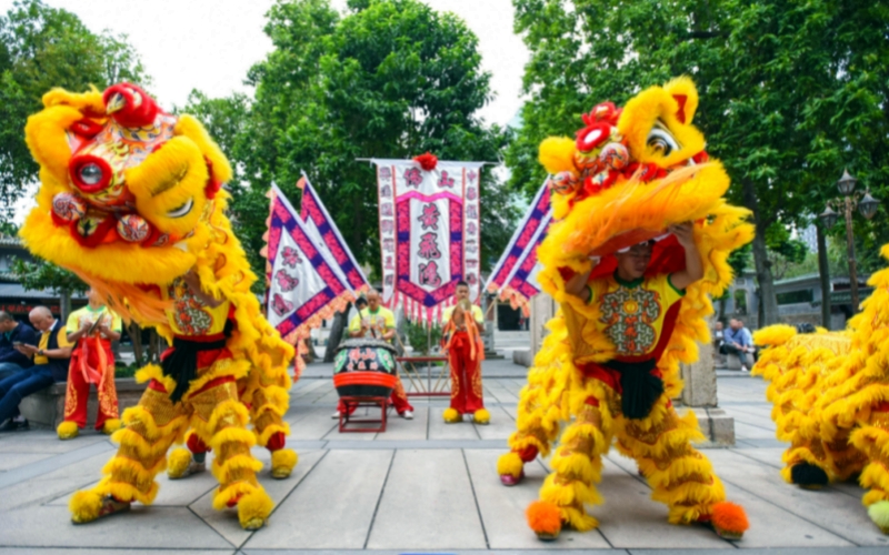 In the afternoon, we'll travel to the Foshan Ancestral Temple (祖庙), which includes ancient temple complexes like the Confucius Temple, Huang Feihong Memorial Hall, and the Yewen Pavilion. In addition to the traditional Lingnan buildings, we can also enjoy lion dance performances (醒狮表演). After that, we'll take a walk in Lingnan Xintandi (岭南天地), located in the center of Donghuali, Zumiao, Chancheng District, Foshan City.