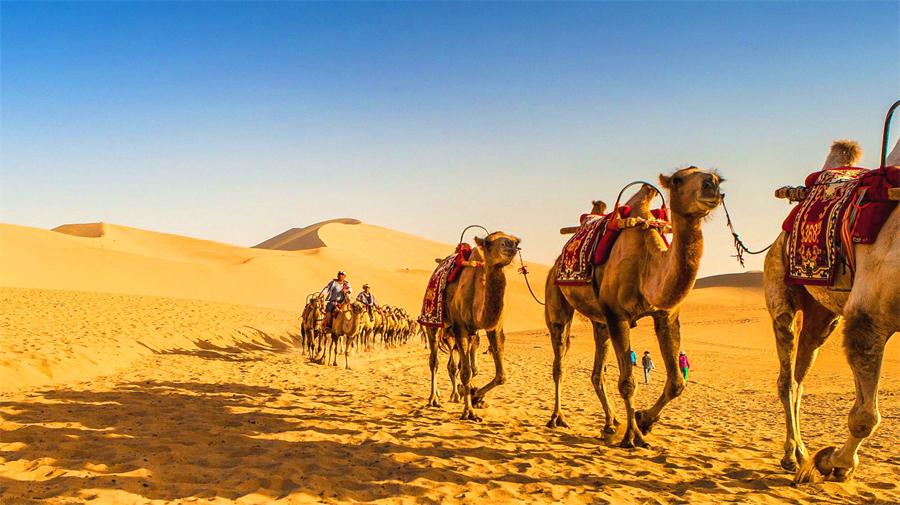 ● Ride camels up the dunes Echoing Sand Mountain and Crescent Lake of Dunhuang.