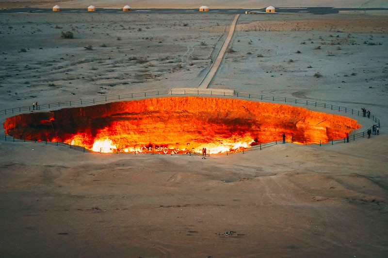 Enjoy your barbeque dinner near the burning gas crater in Darvaza; watch and make photos of the crater during the night time.