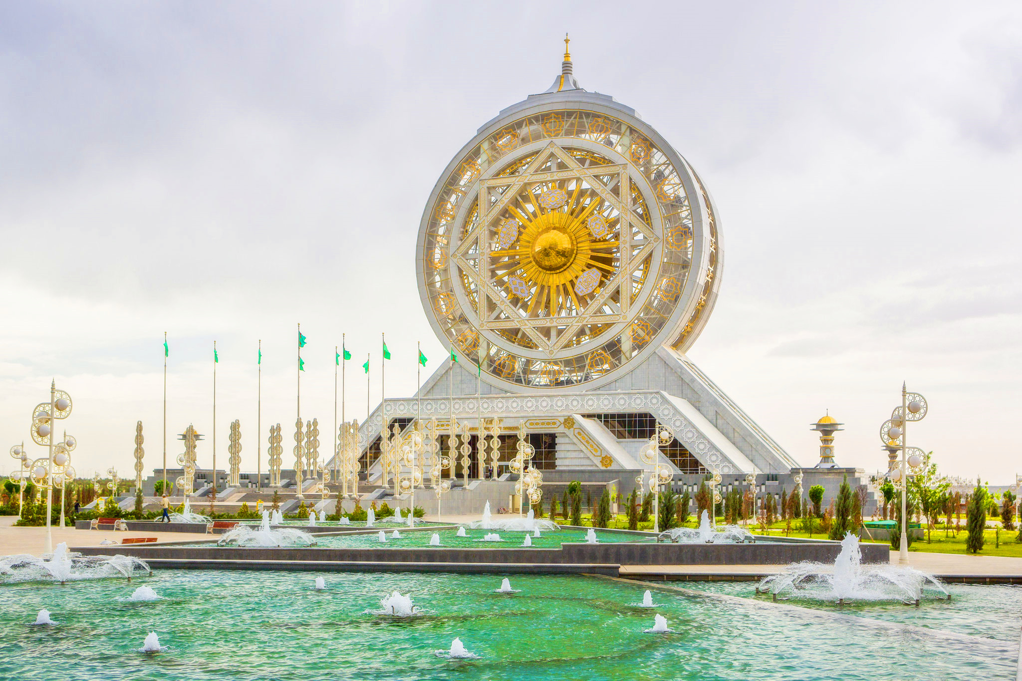 Explore Ashgabat City where there are new parks, a huge complex with fountains and statues of the great men of antiquity, museums and mosques.