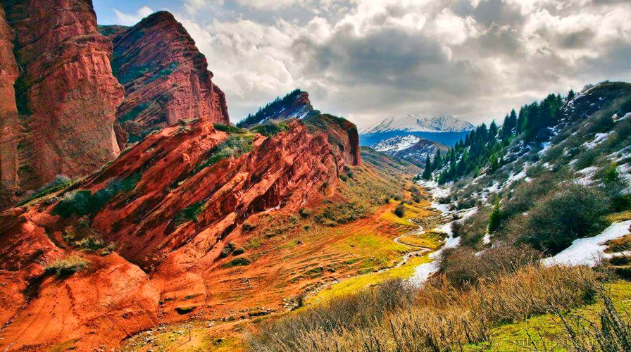 Today we will drive to Jeti Oguz gorge (Seven Bull Canyon), named after a fiery red rock, shaped like seven bulls, with rural wheat fields at the foot of the mountain. You will also see the Broken Heart Mountain there. If you want you can go on a top of a mountain (20 minutes) to see a panorama view of the gorge.