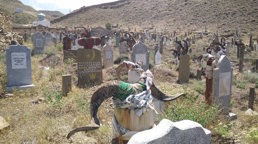 First visit "Kow-ata" underground lake on the way to Nokhur Mountain Village. A warm hydrogen sulphide lake lies in a cave at the Kopet Dag foothills. 276 steps lead into the lake. On your way down you will admire marvelous grapes and lines of stalactites and see bat's bevies. This cave impresses with its greatness. It has the length of 250 m, width 50 m, depth of 65 m. The lake is available all year round because of constant temperature of water. Arrival in Nokhur village. Short sightseeing of Nokhur village and visiting of "Gyz Bibi" Pilgrimage site & its unique cemetery where each tomb has the horns of moun-tain goats, the Great Tree - oldest tree in the village thought to be 800 years old. Even-ing short introduction with local silk textile weavers and having dinner at local family. Overnight in tents or at local family's house.