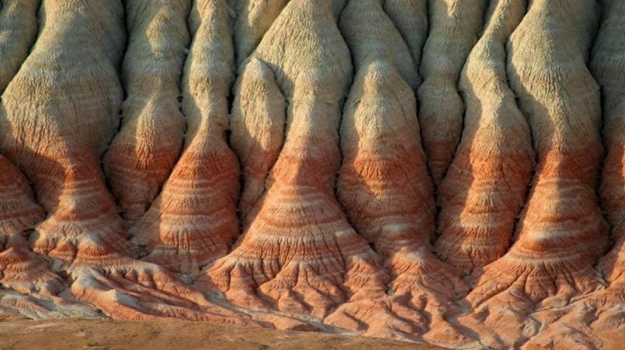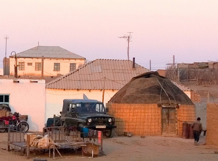 Yangikala, an impressive limestone formations rises up from the desert sands with views of the Karabogaz Gulf in the distance. These limestone cliffs are the remains of massive coral reefs from the pre-historical Parathetys Sea. En route to Yangikala stop in Balkanabat to have lunch and visit the local bazaar to stock up with food & drinks for dinner. Continue to explore the canyon of Yangikala, the best scenery in Turkmenistan, and take a picnic among the cliffs. When the sun sets we drive to the pilgrimage site of Gozli Ata - one of the holiest pilgrim sites in Turkmenistan. The mausoleum of Gozliata, located on a low plat-form against the backdrop of stunning pink and red limestone rock for-mations.Overnight at a local pilgrim house (multi-share accommodation) or camping.