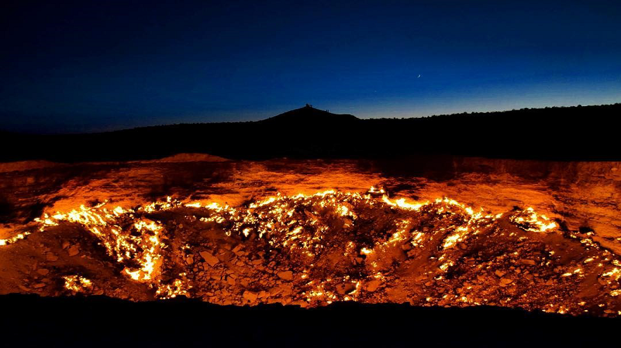 ● An incredible view of Darwaza burning Gas Crater dubbed by locals as "The Door to Hell".