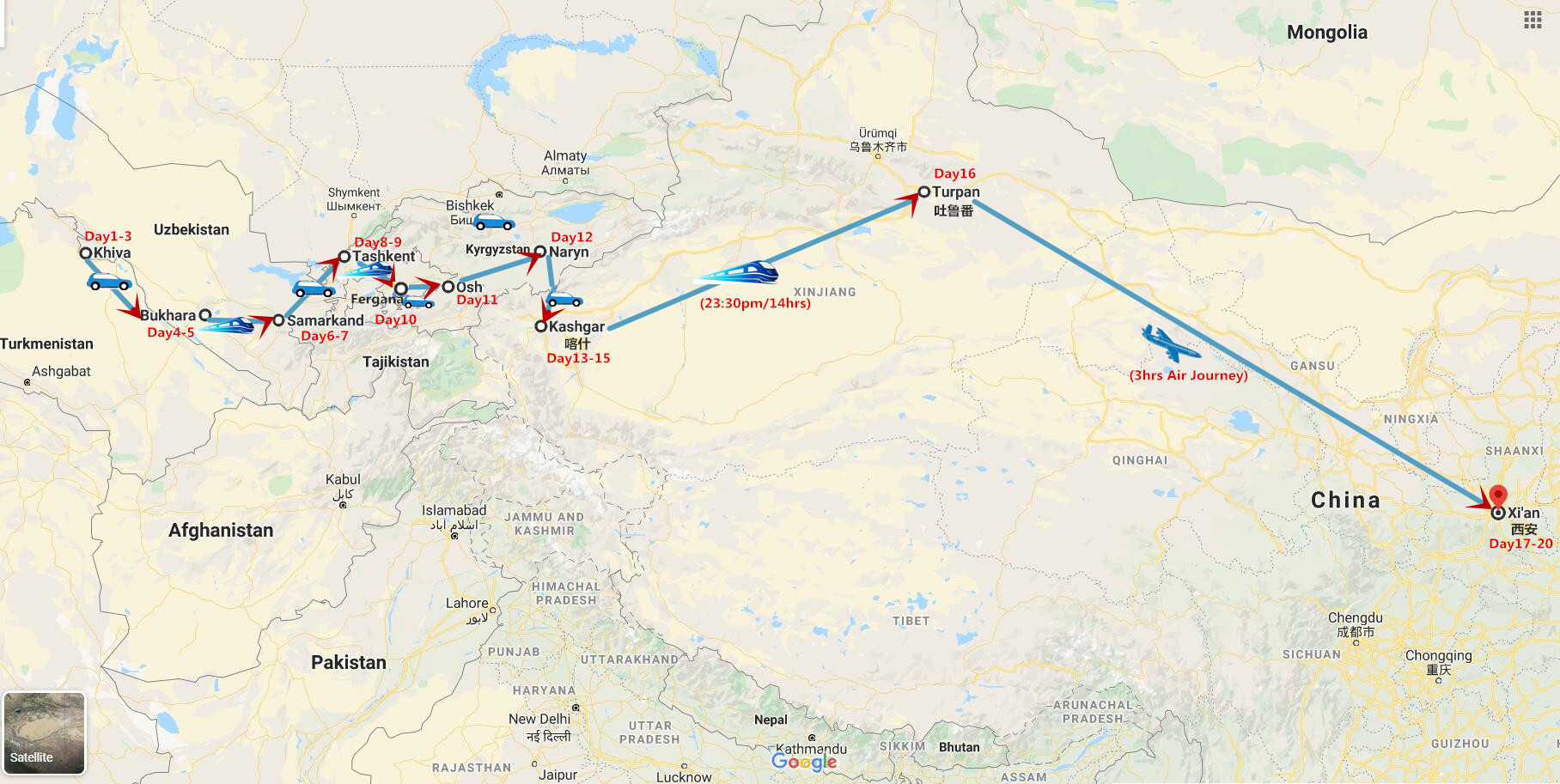 Destinations: Uzbekistan - Kyrgyzstan - Kashgar - Turpan - Xian