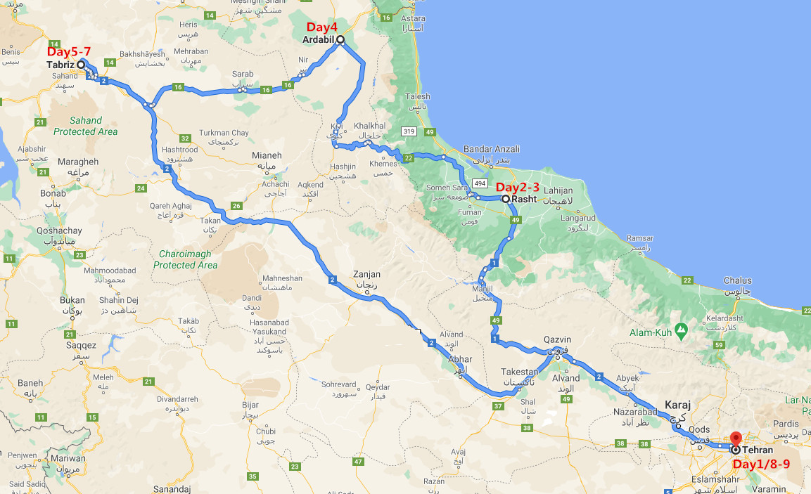 Destinations: Tehran - Rasht - Ardabil - Jolfa - Tabriz