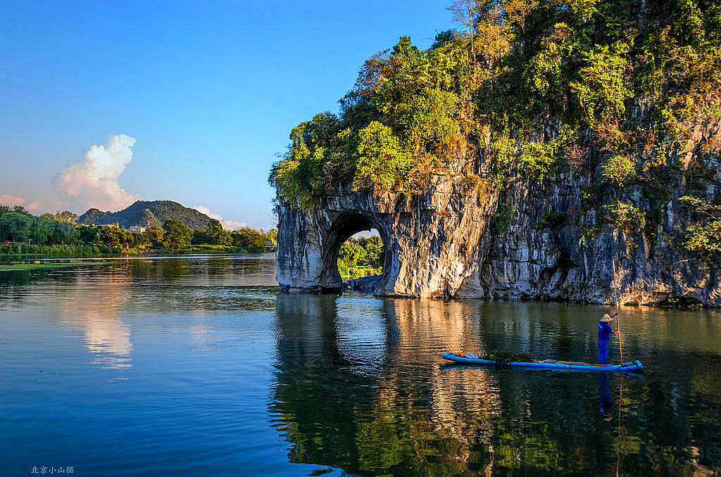After a short rest, we will take you to visit the Elephant Trunk Hill, a symbol of Guilin tourism, located in the confluence of Taohua River and Lijiang River. The mountain is named for its resemblance to a giant elephant standing by the river and stretching its nose to drink water. Between the trunk and the legs is a round hole of about 150 square meters. The river passes through the hole forming a bright moon floating on the surface. Elephant Trunk Hill scenic spot boasts not only Puxian Pagoda, Yunfeng Temple, Kaiyuan Temple's only remaining pagoda in Sui and Tang Dynasties, but also excellent natural scenery, which is a tourist attraction since the Tang and Song Dynasties.