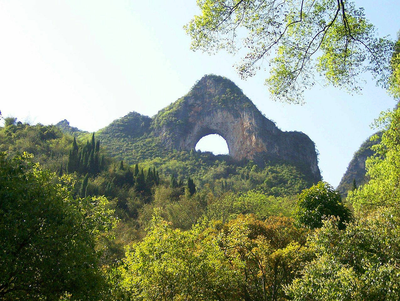 Continue to visit the Moon Hill, a natural wonder in Yangshuo up to 380 meters. Because there is a big hole running through the top of the mountain, like a bright moon, so people call it Mingyue peak, commonly known as the Moon Hill. Viewed from different angles, the shape of the hole is constantly changing. If you drive to see the Moon Hill, the shape of the stone arch will change from the first quarter of the moon, gradually into the half, the full and then into the second quarter of the moon, which is very wonderful.