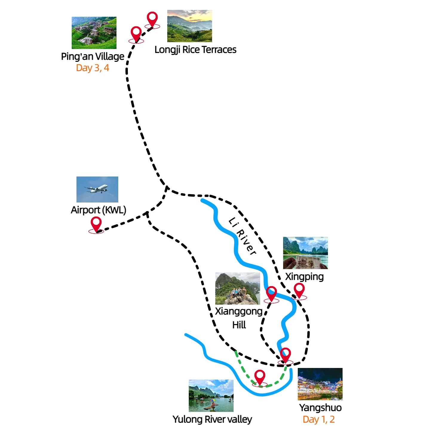 Destinations: Guilin, Yangshuo, Xingping, Ping'an, Longji