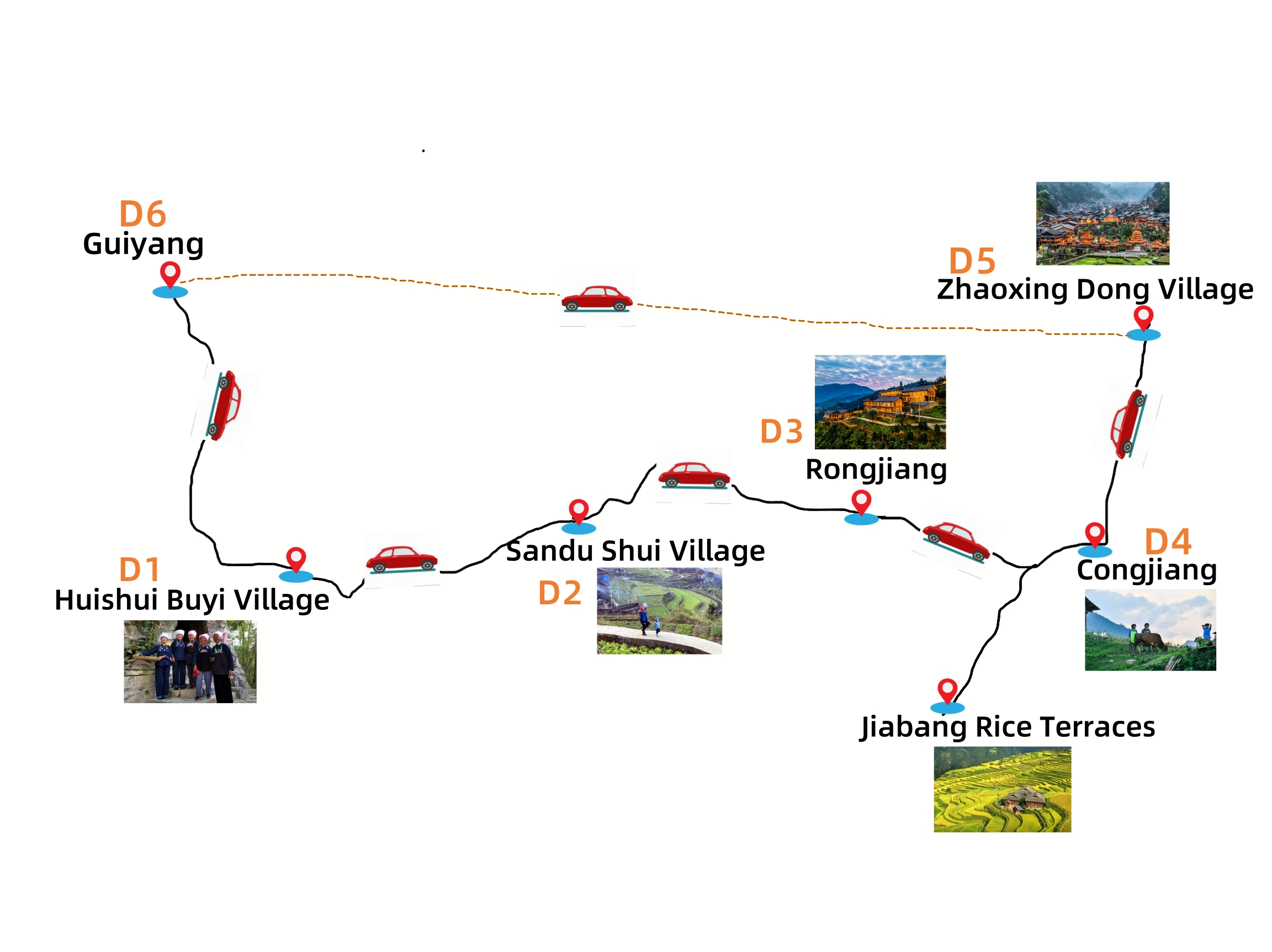 The six-day cultural itinerary covers five major ethnic groups in Guizhou: Buyi, Miao, Dong, Shui, and Yao.
