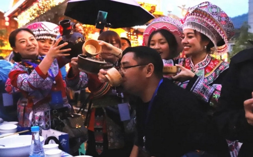 For lunch, indulge in a Miao Feast served on a very long table, the highest standard of feast used to honor guests by the Miao people. Enjoy your meal and the hospitality of the local Miao community.