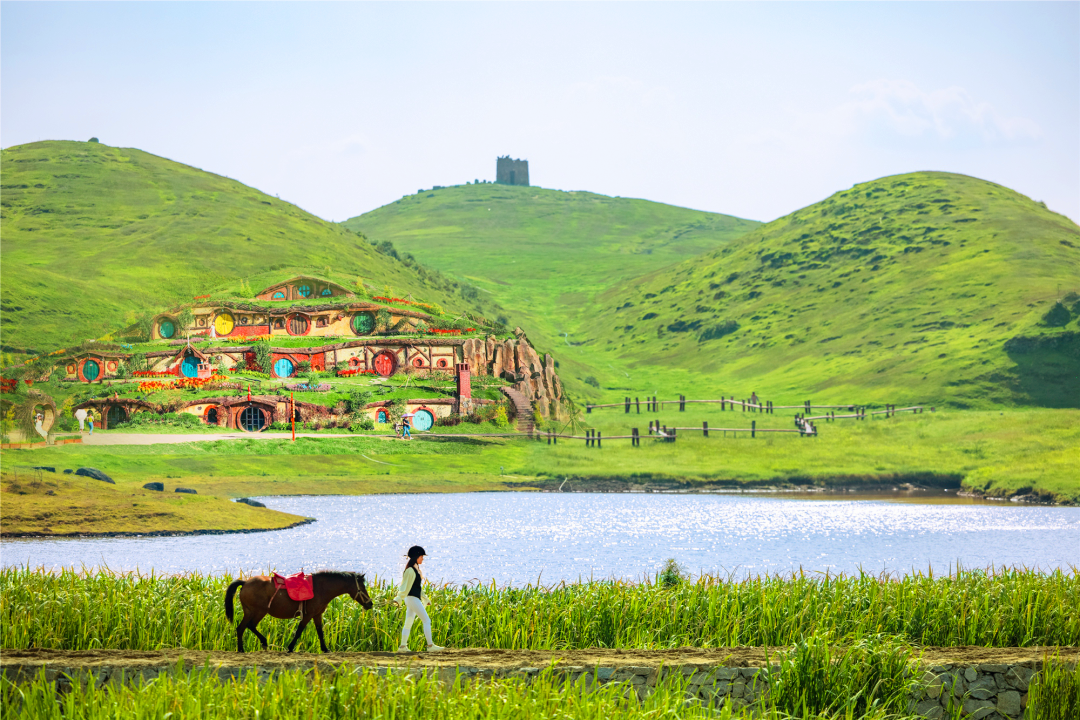 Then we will walk into the fairy grassland to visit the famous Yangtianhu Grassland with Hobbit Castle. Unlike the flat plains of the northern grasslands, the Yangtian Lake grassland is intertwined with hills and plains, showcasing the beauty of both the south and the north. The total area is 40 square kilometers, a free and vast world, with mountains, lakes, windmills, cows and sheep playing the rhythm unique to the southern grasslands.