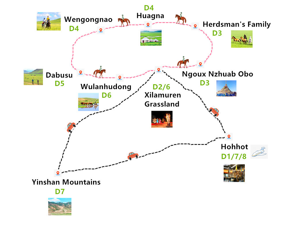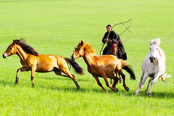 Enjoy a welcome ceremony by inviting you to drink after getting down from a horse in Xilamuren Grassland, and have a chance to take part in the best Mongolia Zhama banquet and bonfire party.