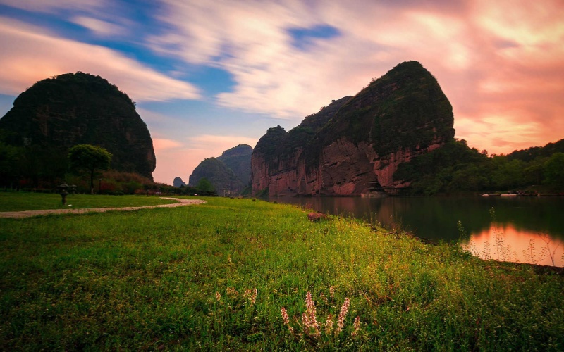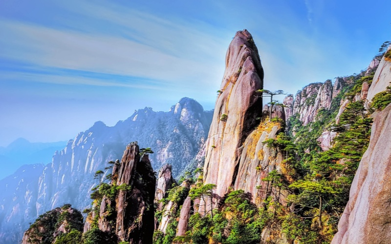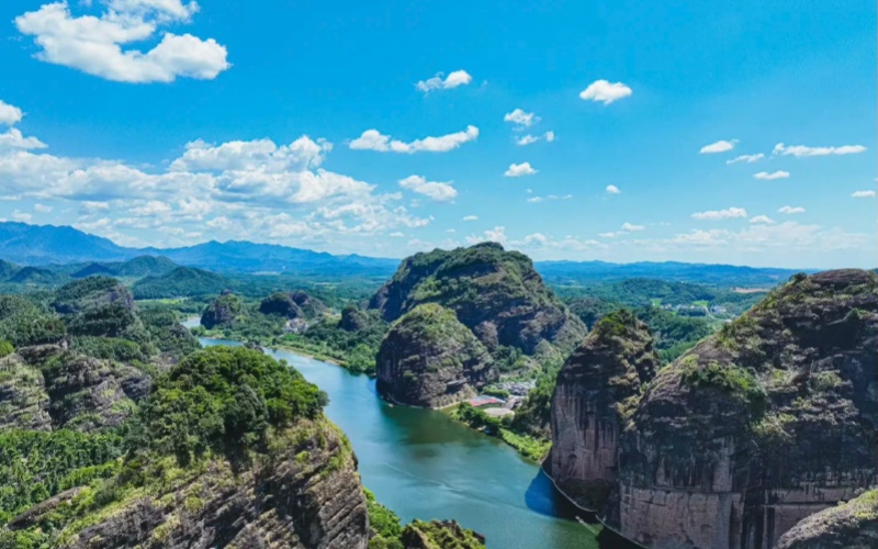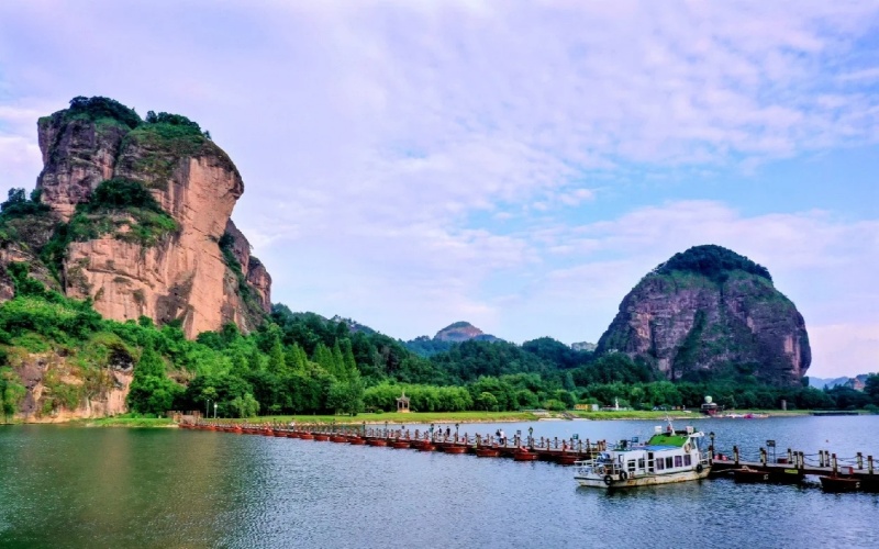 The afternoon arrives in Nanchang as we embark on a scenic 2.5-hour drive towards the breathtaking Longhu Mountain scenic spot. This majestic mountain, also known colloquially as Dragon and Tiger Mountain, holds a profound place in Taoism, boasting a rich and lengthy history that dates back centuries. Longhu Mountain is not only a spiritual destination for Taoists but also a natural wonder that captures the essence of the Danxia landform. Its landscape is characterized by cliffy scarps that rise abruptly from the ground, creating a breathtaking contrast against the sky. The red cliffs and rocks that adorn the mountain are a vivid reminder of the earth's fiery origins, their hues varying from deep crimson to fiery orange, depending on the time of day and the sun's angle.